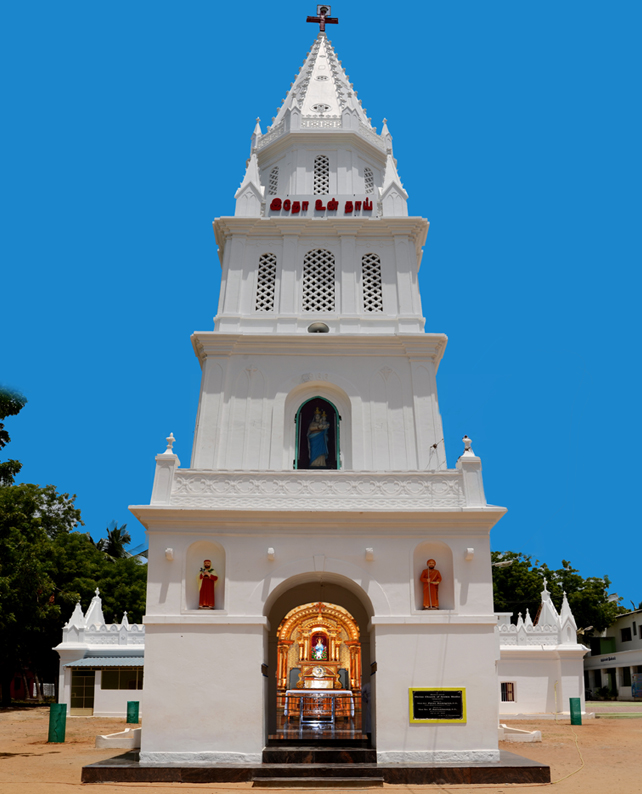 Among the Churches and Shrine dedicated to Mother Mary, here is one at Vadugarpet. It is historically and traditionally famous because of the great missionaries and visionaries St. John De Britto and Fr. Joseph Constantine Beschi. Vadugarpet Shrine is crowned with the patronage of these two missionaries par excellence.